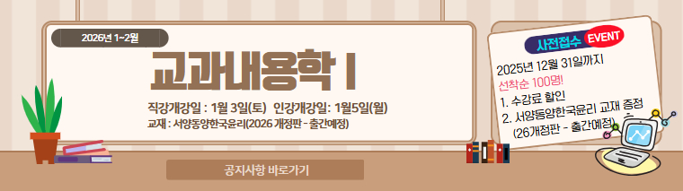 2026년 1~2월 교과내용학I(서양·동양·한국윤리) 개강 및 이벤트..